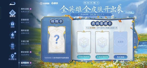 玩家通过活动关注周年盛典、分享活动、观看周年盛典可分别获取1张荣耀卡,并且一共获得3张荣耀卡。