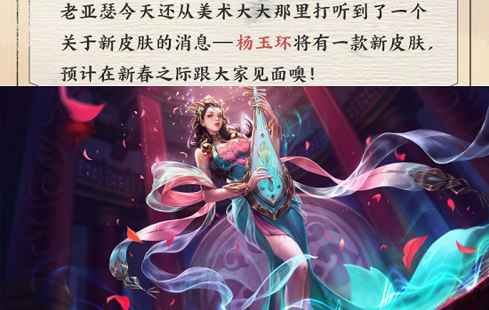 3、综上所述,杨玉环新春皮肤只是放出了消息,毕竟还没有模型出来,大家耐心等待吧。