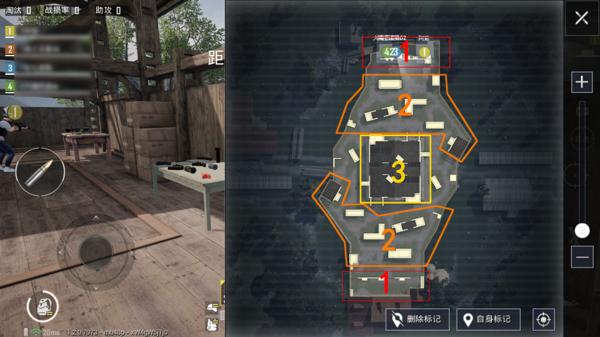 区域1的位置是红蓝两队登陆游戏时的所在地,我们可以称之为初始点,初始点分别为小木屋和围墙内。