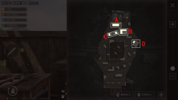 如果在进攻的过程中,健康值受损,建议躲到建筑物C,此处能够躲避对手的后方攻击,隐藏的空间让对手发现不了自己,有利于健康值的回复。