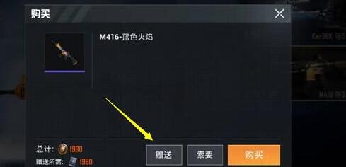 3.选择好之后点击这款枪械皮肤进行购买,点击购买之后会出现赠送、索要、购买三个选项,我们选择赠送;