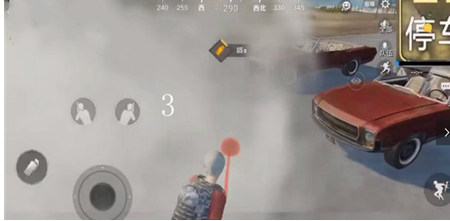 4、在第一颗烟雾弹落地的右方扔第三颗烟雾弹。
