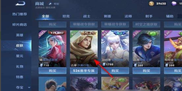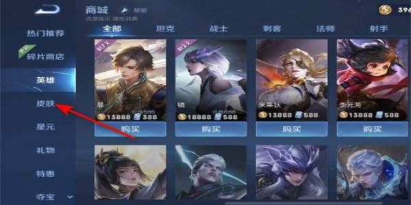 2、进入商店之后,就可以看到左侧有皮肤的选项,点击进入就可以查看皮肤;