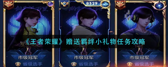在王者荣耀游戏中很多玩家还不清楚赠送羁绊小礼物任务的完成方法是什么。可能还有很多小伙伴不清楚这个问题,不过没有关系小编给大家准备了相关的详细内容来帮助大家更好的了解,下面让我们一起来看看吧。