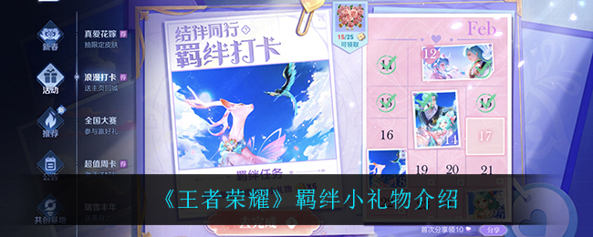 王者荣耀最近上线了浪漫打卡任务,那么其中的羁绊小礼物是什么,下面,游戏爱好者小编就为大家准备了关于这方面的详细攻略,一起来看看吧!