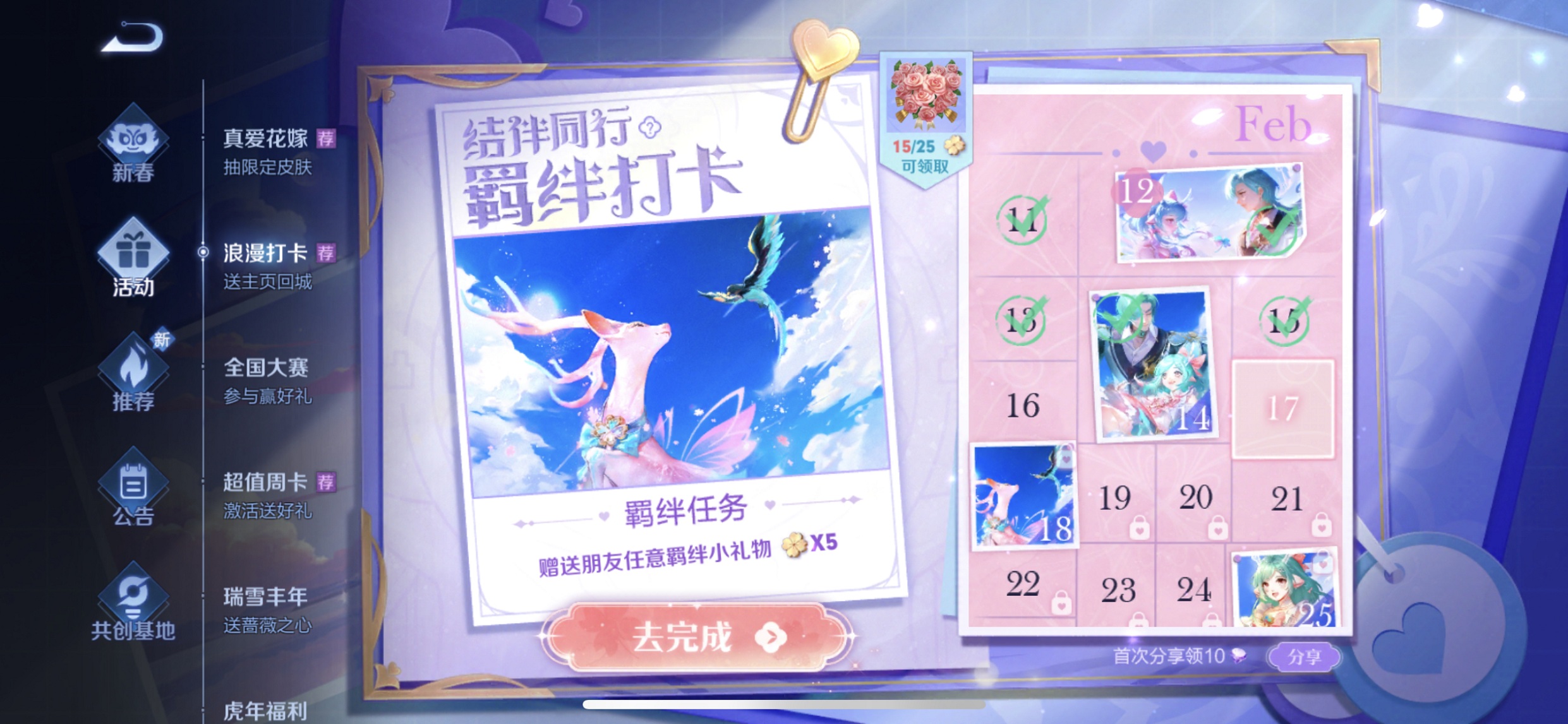 羁绊任务:赠送朋友任意羁绊小礼物