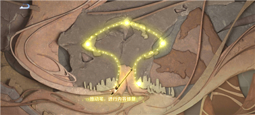 4、拖动笔进行内容修复,顺着光纹拖动,将几个冒着金光的点连接起来即可。