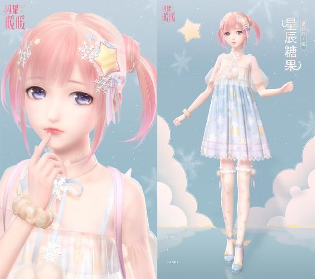 首推套装【星夜烟花】,这款套装虽然只是稀有品质,但却是闪暖开服巅峰期的产物,哪怕放到现在,它也能凭借优异的设计感与限时非凡阁掰掰手腕。当然,最关键的莫过于它本身的气质很符合“糖果梦乐园”这一主题。原版的黑色或许有些违和感,但复苏之后不会让你失望。