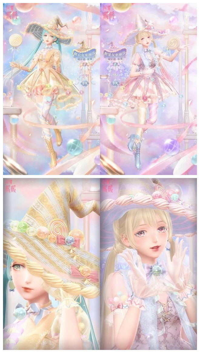 另外糖果女巫丽莎也可以用,它从出现之后就被小伙伴们调侃成“夜宵的拒绝被定义之作”,至今我们都无法理解,狗叠为何要让以清冷古风少女为标签的夜宵设计这样一款套装。而抛开这些不谈,单纯看套装本身,其实它与上文提到的【星辰糖果】一样,也与搭配主题有着极高的匹配度,因为是商店解锁的产物,对只要不是近期才入坑的萌新都不算问题。