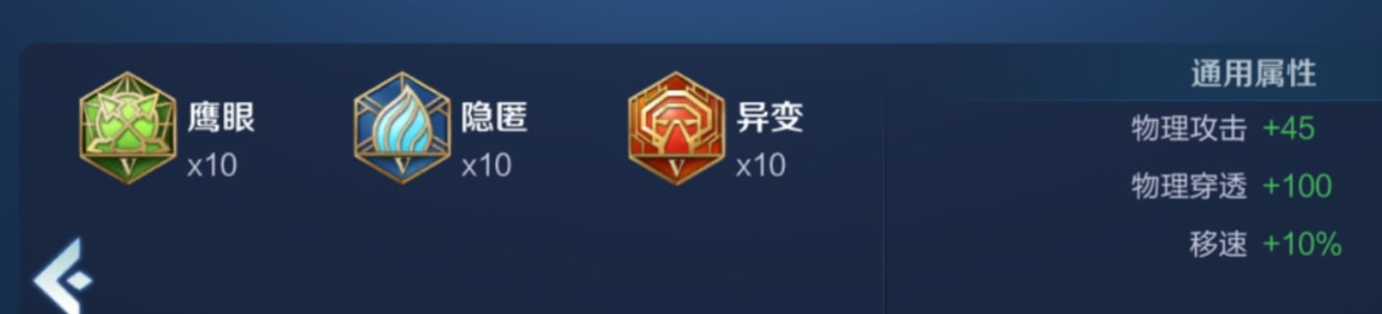 1.射手通用铭文推荐:10红色异变、10蓝色隐匿、10绿色鹰眼。