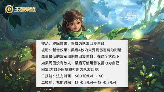 桑启外号叫奶爸,补血量非常可观,但是给自己补血的时候,要么需要周围没人,要么只能放技能或者平A,而且补血效果也不好。最近官方针对桑启的被动做了修改,下面小编也带来了详细介绍!