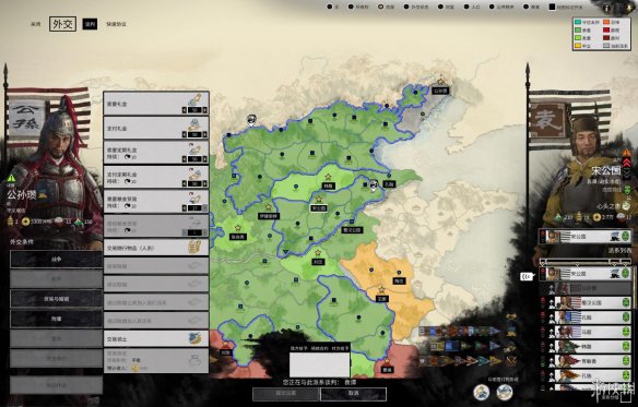 在外交中能够与其他诸侯谈判来签订条约和交易资源物品。在地图上可以通过3键快速打开。