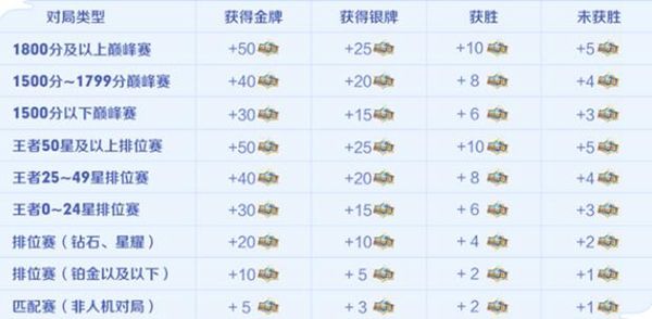 当然荣誉值的计算方法也是需要通过排位赛和巅峰赛才能够获取到的,所以大家一定是要及时的去使用的。当然了这款游戏的荣誉值是很容易就会获取到的,具体的计算表如下: