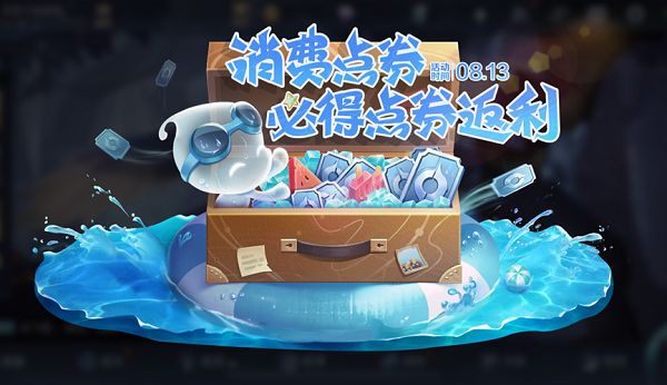 8月13日当天玩家消费点券即可抽取一定比例点券返还,最高返还比例100%(可被返还的消费点券额度上限为5000,按照账号统计);