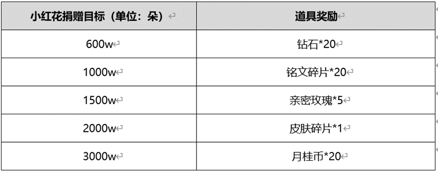 3、同时,会根据全服玩家的小红花捐献进度发放不同阶段的游戏内奖励;