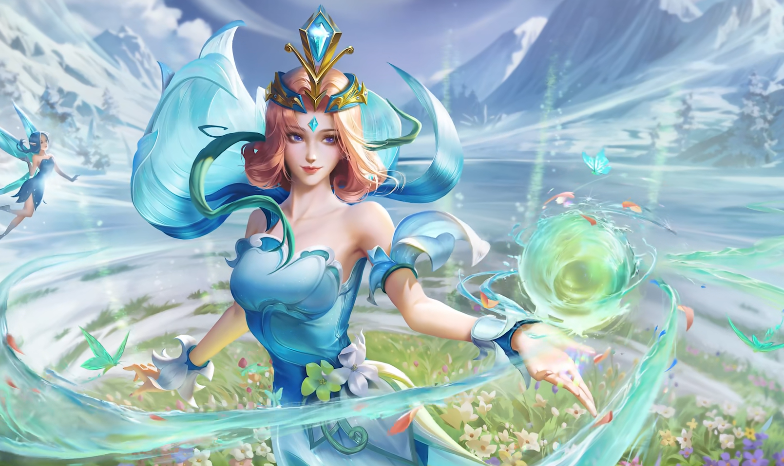 形象设计上,我们结合甄姬花灵的身份,用花瓣的有机形态对甄姬的长裙进行重新设计,使得人物造型辨识度更加明显突出。颜色上,青色到黄色的渐变也更加清爽明亮,带给人如春天般温暖动人的感受。