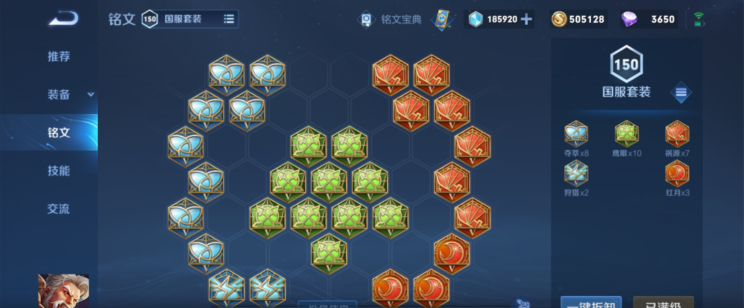 铭文: 夺萃8/狩猎2/鹰眼10/祸源7/红月3