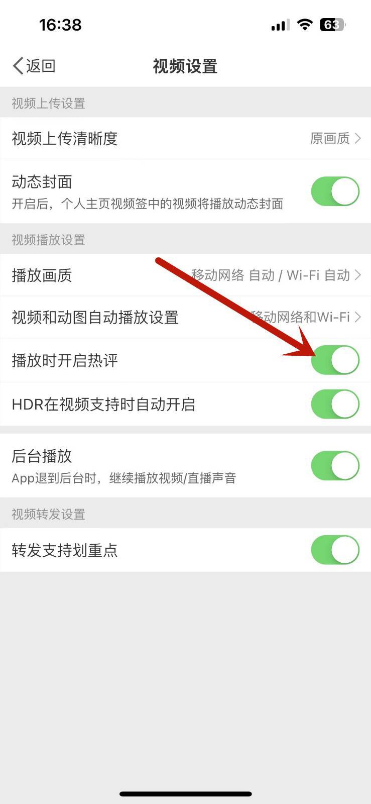将播放时开启热评后按钮打开,即可给微博打开视频播放时开启热评功能了。