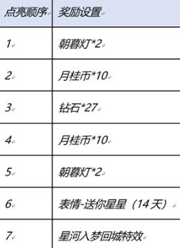 2、玩家完成任务可获得能量,注入星元能量可点亮星路并解锁奖励。完成所有7个星星注入,即可解锁所有奖励。奖励如下: