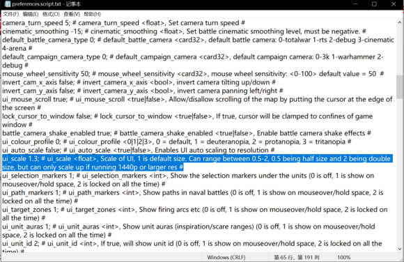 找到第一张图的preferences.script.txt文件,打开,找到选中的这行,修改ui_scale 后的数字,范围是0.5-2,改成自己想要的缩放比例。
