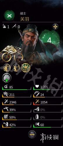 此外关羽的金色名字意味着他是一名传奇将领,传奇将领可能拥有更好的技能组或是特性,并且传奇将领第一次在战斗中死亡时,他并不会实际死亡,而会进入重伤状态,几回合后就会回复正常。