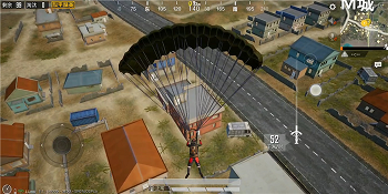 车库旁边的两栋房子都是三层的带天台的,我们任意选一座最近的降落然后从楼顶搜到一楼然后再去另一栋搜到楼顶就可以开始架枪了,在这期间保护好车库里的车,这也是我们跳这里的主要目的。这两栋房子的楼顶视野都非常好,而且围墙的高度足够让我们在趴下的时候处于无敌的状态,可以很好的观察M城的大面积区域。