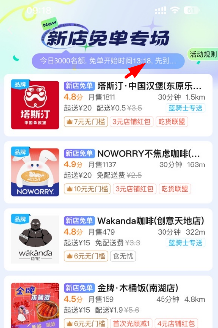 饿了么新店免单时间