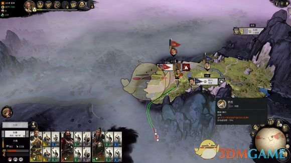 崩了两个档以后痛定思痛,决定开局千里入蜀,效果非常显著,目前双极难88回合基本上已经无敌了,又顺便娶了孙仁,最重要的是中间根本没有任何技术含量,全是无脑推平的,建议大家可以尝试一下。图是诸葛亮出山时的地图,左下角一大块可以白吃掉,然后三兄弟往上推西凉和长安。
