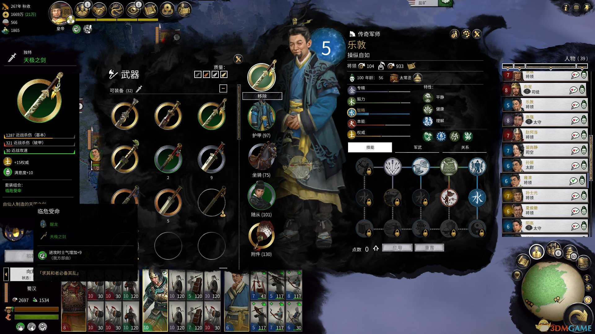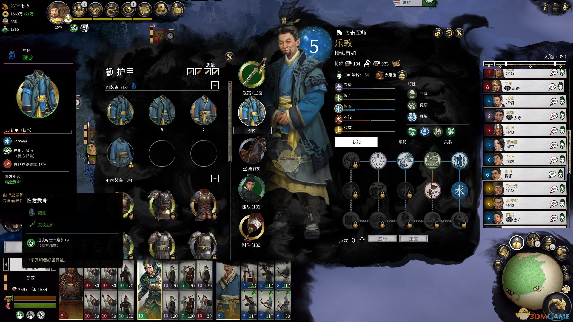 水系金色套装:天极之剑+醒龙!军队进攻时士气永久+9! 这不是重点!重点是醒龙单件的被动效果!伏击永远不会被发现且拥有被动15%减CD!