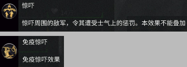 惊吓:惊吓周围的敌军,令其遭受士气上的惩罚。本效果不能叠加。