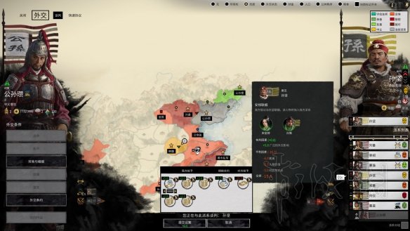 注:我公孙瓒双传奇开局,并没有开阔疆土,想快速试验套路可行与否,别在意,然后过几回合找孙坚联姻孙策,这就得花点钱财了,不贵,招上门女婿!