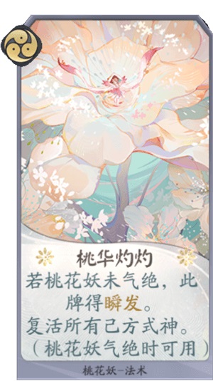 阴阳师百闻牌是一款人气火爆游戏,桃花灼灼是桃花妖的一张三费法术卡,这张牌有着可以逆转局势的力量,可以在关键时刻反败为胜,力挽狂澜。那么阴阳师百闻牌桃花灼灼卡牌有什么效果?今天小编就给大家带来阴阳师百闻牌桃花灼灼稀有度使用技巧一览,感兴趣的小伙伴快来看看吧。阴阳师百闻牌桃花灼灼牌名:桃花灼灼等级:3勾玉类别:法术牌稀有度:SSR效果:若桃花妖未气绝,此牌获得瞬发。复活所有己方式神。(桃花妖气绝时可用