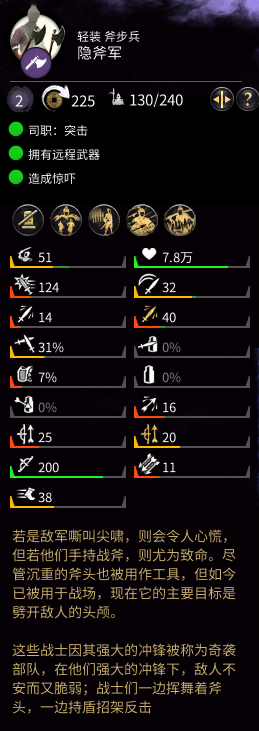 《全面战争:三国》游戏中的郑姜势力,并不是她强盗身份这么简单,旗下配备的兵种非常多,后期发展上来之后,还会出现专属的隐藏兵种——隐斧军,这里带来《全面战争:三国》金系隐斧军属性介绍和分享,希望能够帮助到大家。《全面战争:三国》金系隐斧军属性介绍和分享 若是敌军