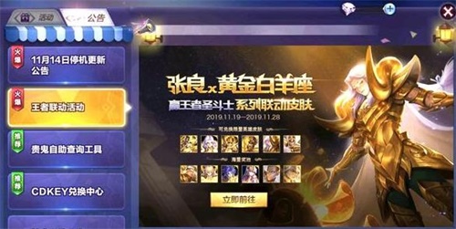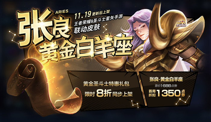 在王者荣耀手游中张良黄金白羊座限时优惠活动都有哪些福利内容呢?接下来就让小编来为大家讲解下王者荣耀手游张良黄金白羊座限时优惠活动内容一览介绍吧,感兴趣的小伙伴们速来围观吧~~王者荣耀手游张良黄金白羊座限时优惠活动内容:【张良-黄金白羊座限时优惠】首周折扣时间:11月19日更新后-11月25日23:59首周折扣价格:1350点券(原价1688点券)【黄金圣斗士礼包】礼包上架时间:11月19日更新后-