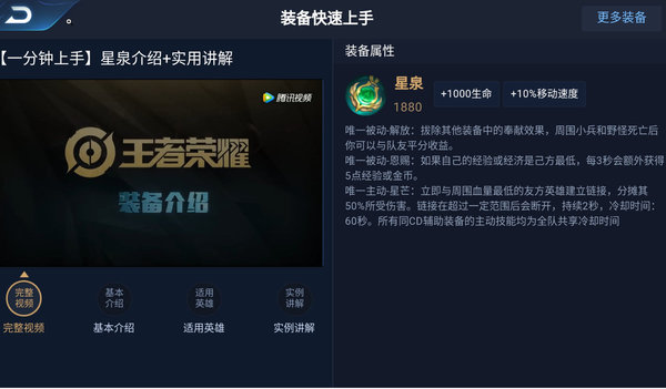王者荣耀装备星泉怎么用?可能有些玩家对龙王者荣耀装备星泉的用法不是很清楚,下面就跟着小编一起来看看吧。辅助装星泉深度解析星泉个人看法新版本已经上线一周了,新出的辅助装星泉总得来说在路人局的作用很低。因为在路人局,你使用星泉这个辅助装拿不准什么时候用这个主动技能
