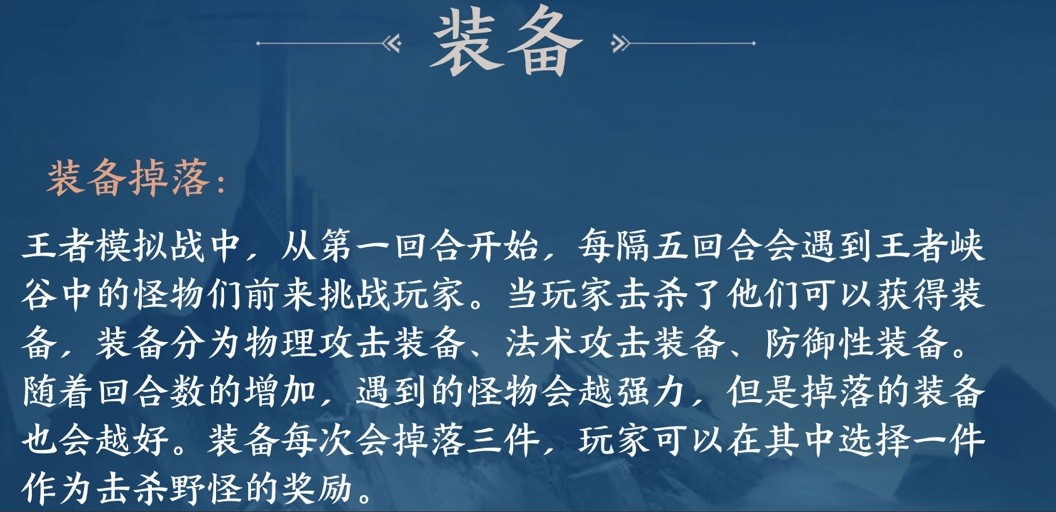 王者模拟站当选择装备后,装备会默认穿戴到推荐英雄的身上(在设置中可以切换成手动)如何没有合适的英雄穿戴,会自动收到背包中,玩家可以在背包中手动穿戴王者模拟战怎么换装备 王者模拟战怎么穿戴卸载装备①装备掉落王者模拟战中,从第一回合开始,每隔五回合会遇到王者峡谷中