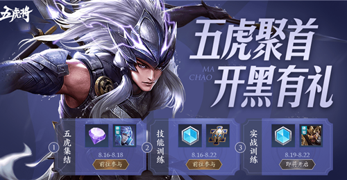 五虎聚首开黑有礼活动怎么玩?本周上线了一些全新的活动,小编这里带来了五虎聚首开黑有礼活动介绍,一起来看看吧!【五虎上将】对战得好礼1.五虎集结,组队对局得好礼【活动时间】:8月16日00:00~8月18日23:59【五虎上将】:关羽、张飞、赵云、黄忠、马超【参