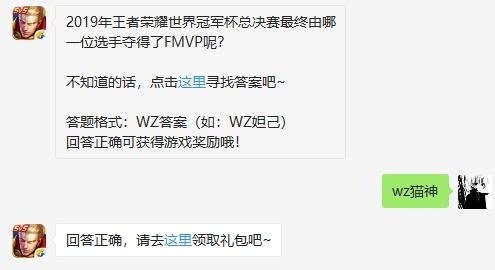 《王者荣耀》2019年王者荣耀世界冠军杯总决赛最终由哪一位选手夺得了FMVP呢?很多小伙伴们不知道8月12日每日一题的答案,接下来就由小编带来王者荣耀8月12日微信每日一题答案,快进来看一看吧。2019王者荣耀8月12日微信每日一题问题 2019年王者荣耀世界