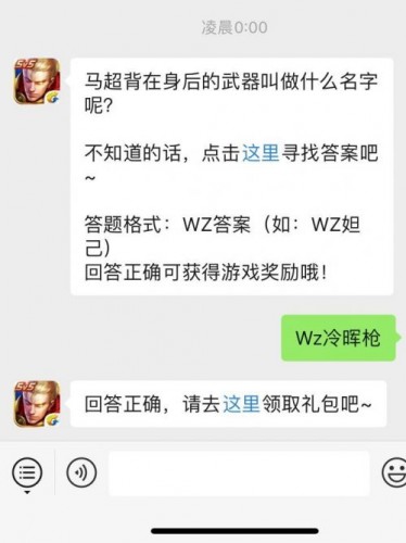 王者荣耀微信公众号每天都会更新新的问答,玩家正确回答便可获取相对应礼包,8月6日的问题是:马超背在身后的武器叫做什么名字呢?针对这个问题,小编为大家整理了相关资讯,如果你也想知道答案,就跟着小编一起来看看吧。王者荣耀8月每日一题问题:马超背在身后的武器叫做什么