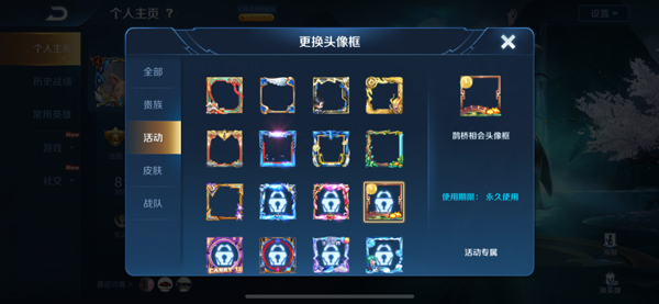 王者荣耀鹊桥相会头像框怎么获得?相信大家在游戏中看到别的玩家装备这个头像框都十分羡慕,于是小编今天带来了王者荣耀鹊桥相会头像框获得方法,想要拥有这款头像框的玩家们就一起来了解一下吧!王者荣耀鹊桥相会头像框获得方法:使用期限:永久使用获得方法:七夕峡谷游活动获得