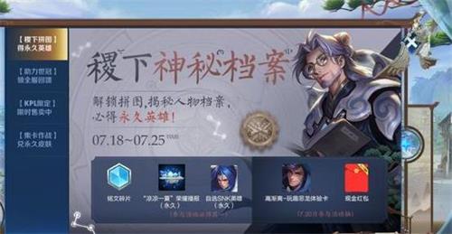 王者荣耀稷下的神秘档案活动内容是什么?有很多小伙伴们都不知道,那么下面就由小编来为大家带来稷下的神秘档案活动内容介绍吧,希望能够帮助到大家。稷下的神秘档案活动内容介绍活动时间:预计7.18-7.25活动内容:【SNK永久英雄任选】参与活动稷下的神秘档案,得永久