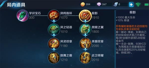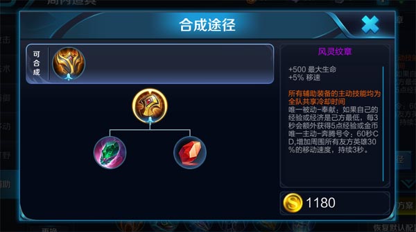 王者荣耀新装备风灵纹章有什么样的属性?作为全新的辅助装备究竟能为我们带来什么?我们就一起来看看吧!【装备名称】 风灵纹章【装备类型】 辅助类装备【价格】 1180【属性】 最大生命+500;移速+5%【被动】 唯一被动:奉献:如果自己的经济或经验是己方最低,每