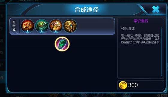 王者荣耀学识宝石属性是什么?王者荣耀新装备学识宝石怎么用?今天小编要给大家带来的是王者荣耀新装备学识宝石的使用技巧。【装备名称】 学识宝石【装备类型】 辅助类装备【价格】 300【属性】 5%移速【被动】 唯一被动-奉献:如果自己的经济或经验是己方最低,每3秒