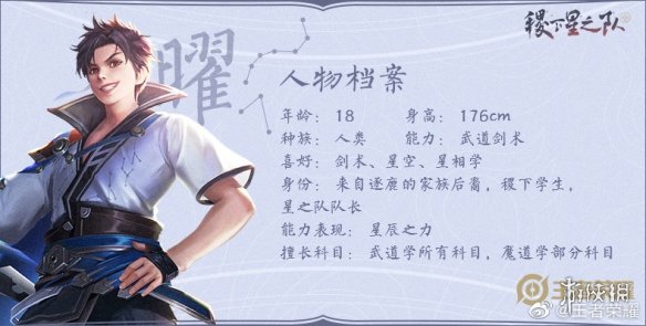 王者荣耀曝光了新英雄曜的机密档案,曜作为稷下星之队的队长,当然是要好好的介绍一番的,那么下面就和小编一起来看看吧!王者荣耀曜档案资料分享因童年与姐姐竞赛的阴影,曜至今仍习惯于夸张花哨的剑术和虚张声势的风格~甚至组建了自己的星之队小队并担任队长,以期与姐姐抗衡。
