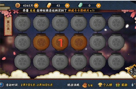 火影忍者花灯解谜第1关怎么过?想必很多的小伙伴们都不是很清楚,那么接下来,就跟随游戏爱好者小编一起来看一下《火影忍者花灯解谜第2关过关攻略》吧!感兴趣的小伙伴一定不要错过哦!火影忍者花灯解谜第1关过关攻略我们点击花灯1和花灯2即可过关(没有顺序要求)。其实我们只要点击第一排2个花灯中的任意一个,和第三排2个花灯中的任一一个即可。以上就是游戏爱好者小编为大家带来的《火影忍者花灯解谜第1关过关攻略》,