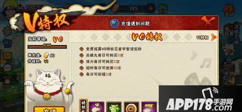 今天小编要给大家带来的是大全解析,很多玩家玩手游都有一定的充值习惯,但是对于充值的每一阶段都不是很了解,今天小编就给大家带来,大全,具体内容一起往下看。一:VIP0-需充值0元VIP0特权内容:可以免费招募VIP0特权忍者宇智波佐助,每天可以购买兵粮丸5次,购