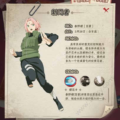 火影忍者手游开启百豪之力的小樱,与之前的完全不一样,不仅可以在战斗中回血还能灵动的进行位移,下面小编就为玩家带来《火影忍者手游》春野樱技能用法介绍,一起来看看吧。 一、技能介绍 普通攻击:普通攻击一共有5A。 樱花抱:春野樱[百豪]向前方进行一次突进并抓取一