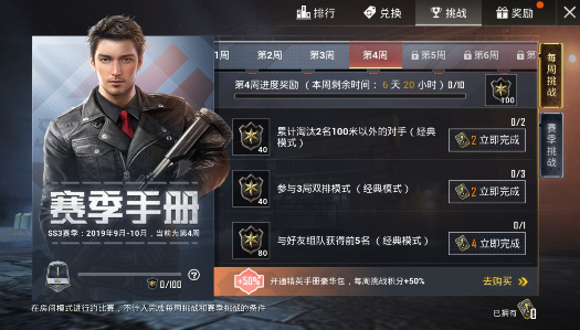 SS3赛季第四周任务怎么快速完成?本周的挑战任务已经刷新了,小编这里带来了SS3赛季第四周任务攻略,一起来看看吧!SS3赛季第四周任务攻略累计淘汰2名100米以外的对手(经典模式)参与3局双排模式(经典模式)与好友组队获得前5名(经典模式)累计在暗夜危机模式中
