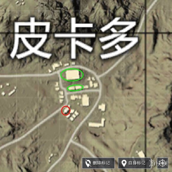 作为沙漠中最热门的资源点。这里的打法套路也是非常的多。有跳拳击馆的,有跳赌场的,有在旁边发育的。今天小编就为大家介绍一种比较简单粗暴的打法。皮卡多打法攻略教学图中标记的红色的地点就是我们选择的落地点。也就是皮卡多的蓝楼。跳伞直接落在一楼顺着搜上去然后直接上楼顶