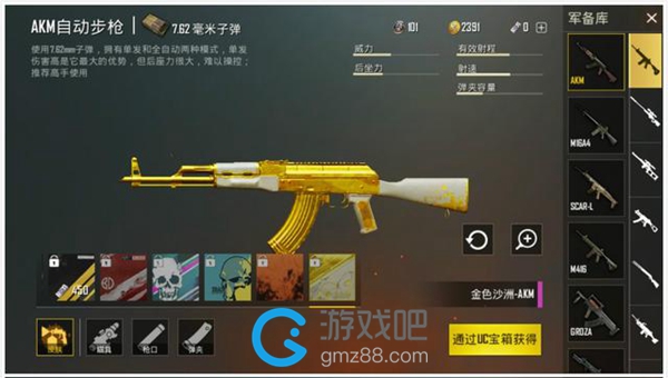 和平精英国际服在9月更新后上线了全新的AKM皮肤,金色沙洲,金光灿灿富丽堂皇!感兴趣的小伙伴快随小编一起看看和平精英AKM金色沙洲皮肤获取方法介绍。AKM金色沙洲皮肤皮肤介绍: 土豪金AKM。获取方法: 通过UC宝箱获得(国际服)和平精英枪械皮肤大全 以上就是